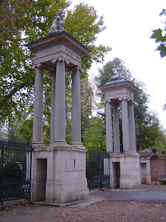 Me he permitido hacer un montaje fotográfico con la estatua de Minerva entre las columnas de la puerta del jardín. Ésta es la entrada: